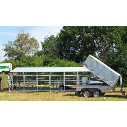 Systém zahŕňa: Mobilnú dojaciu miestnosť MOOTECH-6 s prístreškom Mobilnú dieselovú vákuovú dojaciu jednotku MOOTECH-D750L 6 x dojacie jednotky Mobilnú nerezovú vákuovú nádrž na mlieko 700 l Poloautomatické umývacie zariadenie Bojlery na dodávku teplej a studenej vody 2 x 120 l Rozmery prívesu: d/š: 3,00/1,5 (m), dvojitá os - 4 kolesá, R14 Voliteľné: Skriňa na vybavenie Sprejová guľa na oplach nádrže na mlieko Výhody: Proces dojenia sa vykonáva na pastvine počas pasenia, kŕmenia a odpočinku Proces dojenia v mobilnom systéme trvá oveľa kratšie ako dojenie pasúcich sa kráv v stacionárnom systéme Kravy sa pasú nezávisle od vzdialenosti od chovných zariadení Priemerný čas dojenia je 6-7 minút na 1 kravu / 1 miesto. Systém umožňuje dojenie 6 kráv súčasne Systém možno používať v interiéri Dojenie do vákuovej nádrže vyžaduje menej práce, skracuje proces dojenia, zlepšuje hygienické podmienky, mlieko nie je v kontakte so vzduchom, nie sú potrebné žiadne nádoby na dojenie, a ani prenášanie vedier s mliekom Jednotlivé vstupné a výstupné brány sú ovládané zvnútra Kravy dojené na oddelených miestach robia dojenie menej stresujúcim a súčasne bezpečným pre dojiča a kravu Systém zaručuje jednoduché ovládanie vstupu kráv. Brány systému ovládané zvnútra zaisťujú praktickú kontrolu a poriadok. Každá krava je dojená jednotlivo, čo zvyšuje výkon až o 30 % na jedno miesto dojenia v porovnaní s inými typmi dojacich systémov. Jednoduché pripojenie klastrov na dojenie Systém zaručuje voľný prístup. Zvieratá sú umiestnené rovnobežne s dráhou dojičov, konštrukcia zaisťuje jednoduchú kontrolu nad zvieratami, jasný výhľad na zviera a minimalizuje riziko zranení zvieraťa aj obsluhy Systém ponúka úsporné riešenie. Systém na pastve šetrí náklady na dojenie a čas procesu dojenia. Servis dojacieho systému je jednoduchý, ponúkame vám náhradné diely a servis