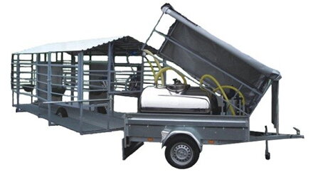 Systém zahŕňa: Mobilnú dojaciu miestnosť MOOTECH-4 s prístreškom Mobilnú dieselovo/elektrickú vákuovú dojaciu jednotku MOOTECH-D/E450L 4 x dojacie jednotky Mobilnú nerezovú vákuovú nádrž na mlieko 500 l Poloautomatické umývacie zariadenie Rozmery prívesu: d/š: 2,5/1,22 (m) Voliteľné: Skriňa na vybavenie Čerpadlo na mlieko Sprejová guľa na oplach nádrže na mlieko Bojlery na dodávku teplej a studenej vody 2 x 100 l Výhody: Proces dojenia sa vykonáva na pastvine počas pasenia, kŕmenia a odpočinku Proces dojenia v mobilnom systéme trvá oveľa kratšie ako dojenie pasúcich sa kráv v stacionárnom systéme Kravy sa pasú nezávisle od vzdialenosti od chovných zariadení Priemerný čas dojenia je 6-7 minút na 1 kravu / 1 miesto. Systém umožňuje dojenie 4 kráv súčasne Systém možno používať v interiéri Dojenie do vákuovej nádrže vyžaduje menej práce, skracuje proces dojenia, zlepšuje hygienické podmienky, mlieko nie je v kontakte so vzduchom, nie sú potrebné žiadne nádoby na dojenie, a ani prenášanie vedier s mliekom Jednotlivé vstupné a výstupné brány sú ovládané zvnútra Kravy dojené na oddelených miestach robia dojenie menej stresujúcim a súčasne bezpečným pre dojiča a kravu Systém zaručuje jednoduché ovládanie vstupu kráv. Brány systému ovládané zvnútra zaisťujú praktickú kontrolu a poriadok. Každá krava je dojená jednotlivo, čo zvyšuje výkon až o 30 % na jedno miesto dojenia v porovnaní s inými typmi dojacich systémov. Jednoduché pripojenie klastrov na dojenie Systém zaručuje voľný prístup. Zvieratá sú umiestnené rovnobežne s dráhou dojičov, konštrukcia zaisťuje jednoduchú kontrolu nad zvieratami, jasný výhľad na zviera a minimalizuje riziko zranení zvieraťa aj obsluhy Systém ponúka úsporné riešenie. Systém na pastve šetrí náklady na dojenie a čas procesu dojenia. Servis dojacieho systému je jednoduchý, ponúkame vám náhradné diely a servis