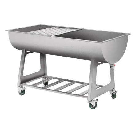 Míchací vana z nerezavějící oceli, na požadavek půlkruhový nebo čtvercový tvar